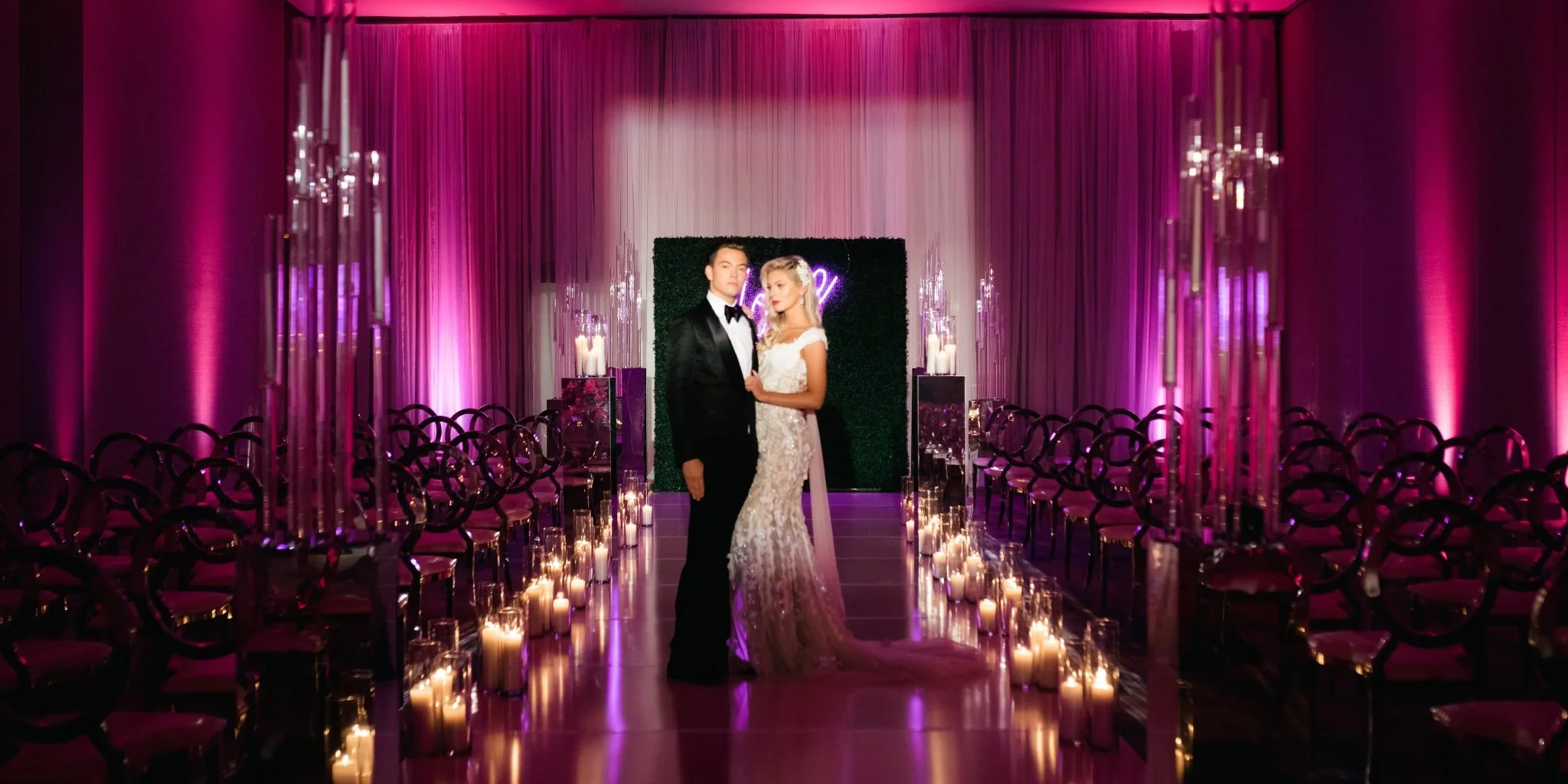 Transform your venue with professional draping and backdrop installation. We offer pipe and drape rentals and custom draping designs for ceremony backdrops, sweetheart tables, stages, and photo moments. Whether your event is elegant, modern, or romantic, our team creates clean, high-end draping that photographs beautifully.